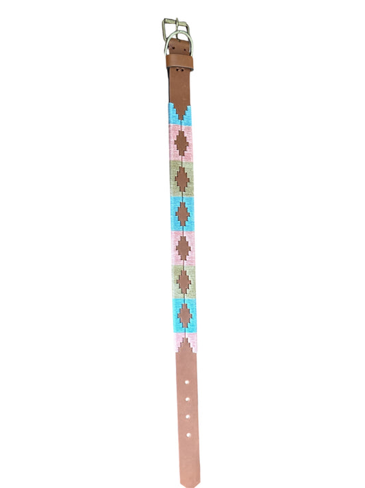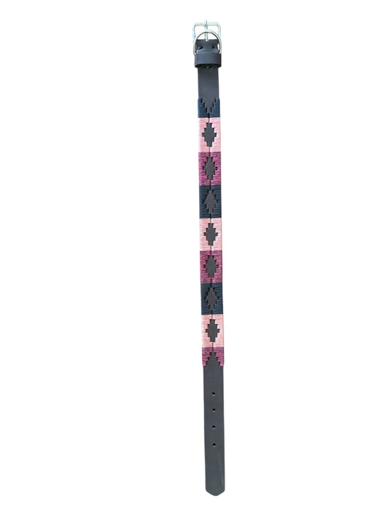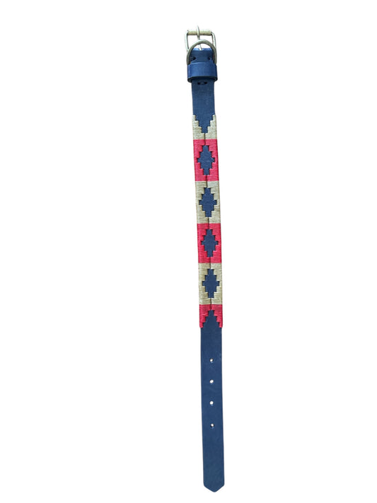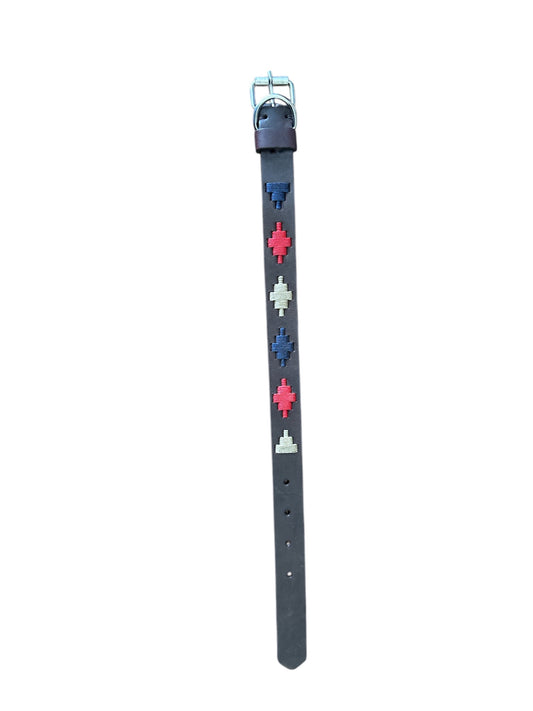 Dog Collar - Dark Brown Leather with Pinks & Navy