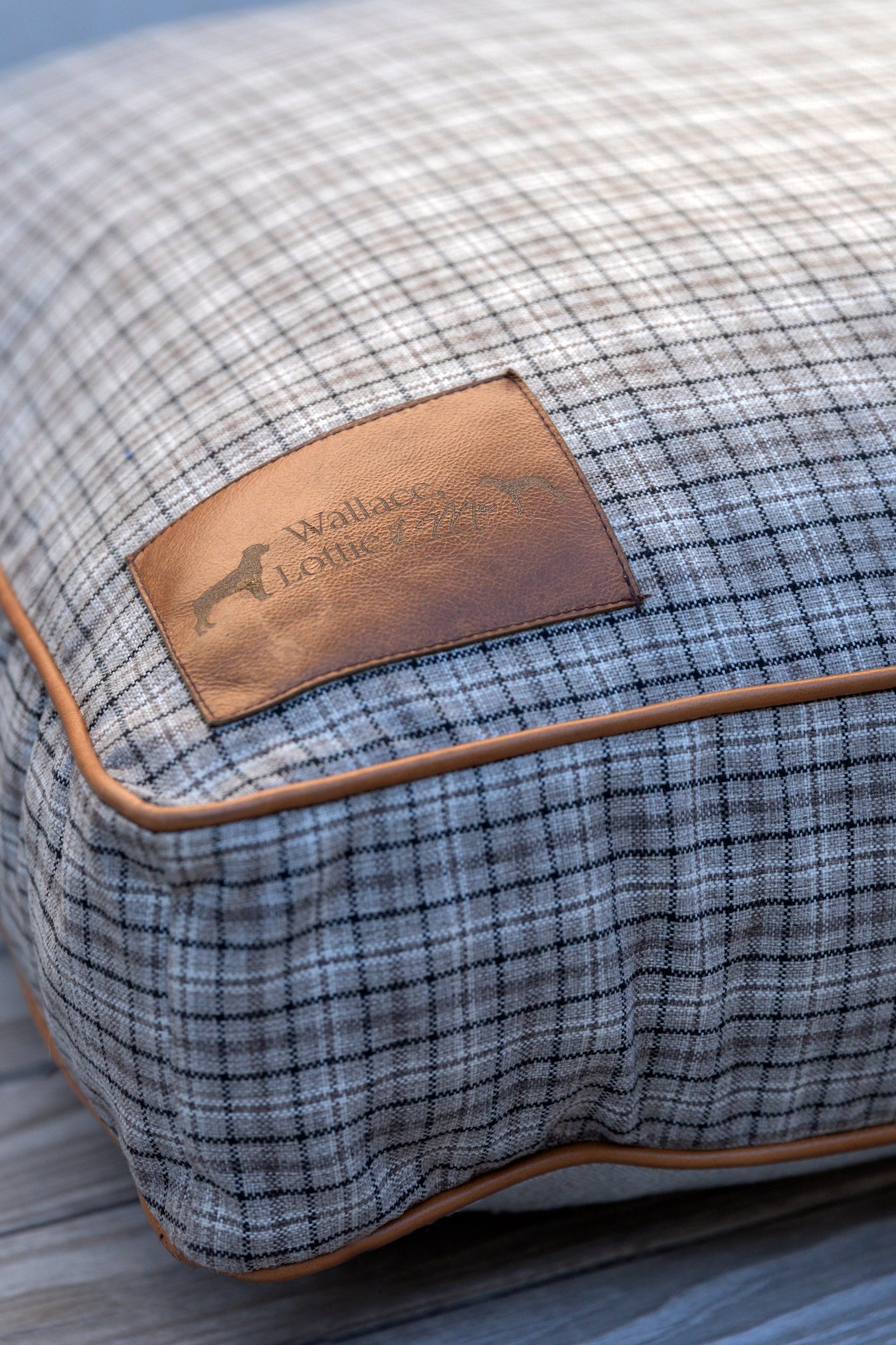 Taupe Plaid Dog Cushion