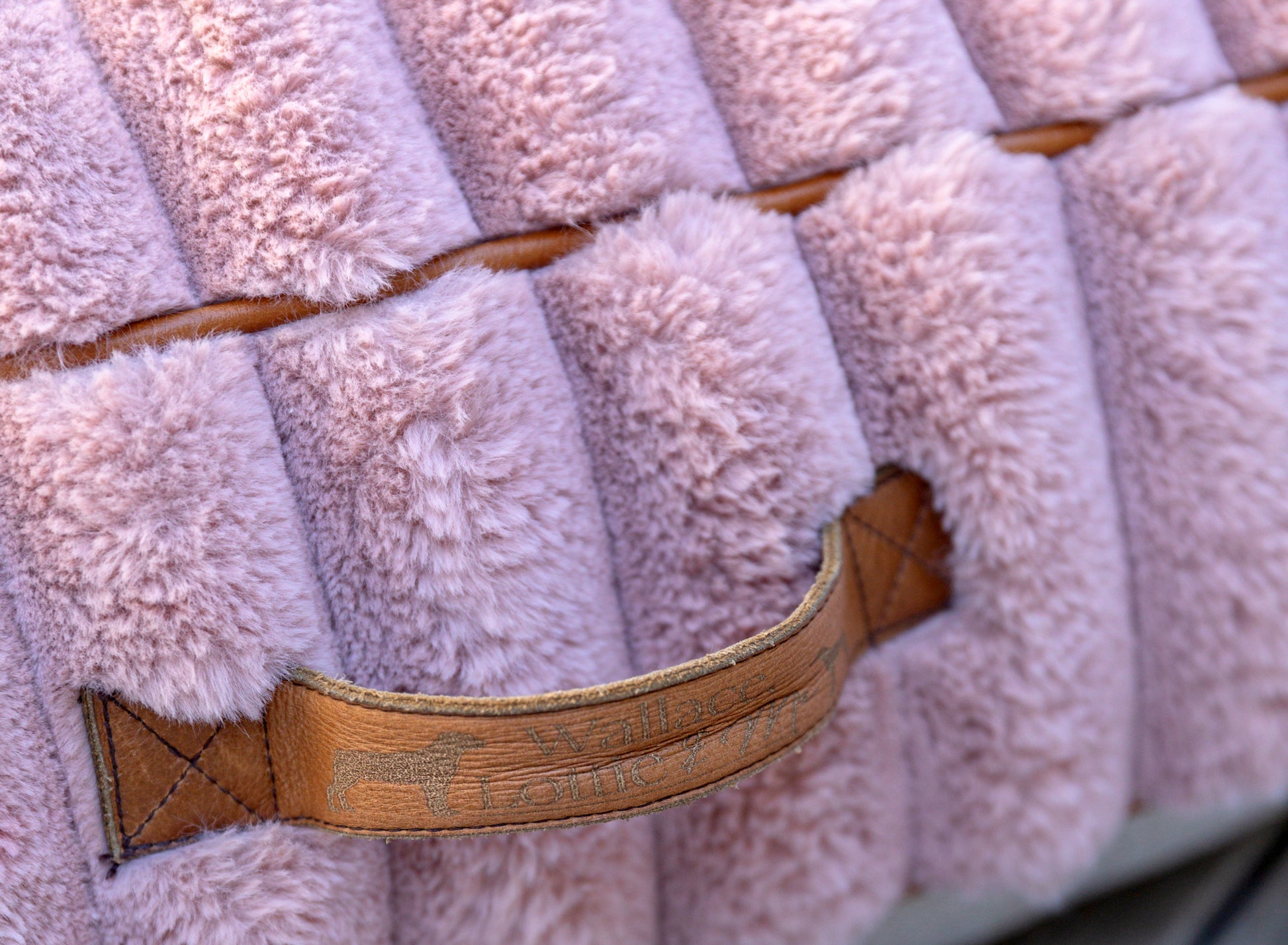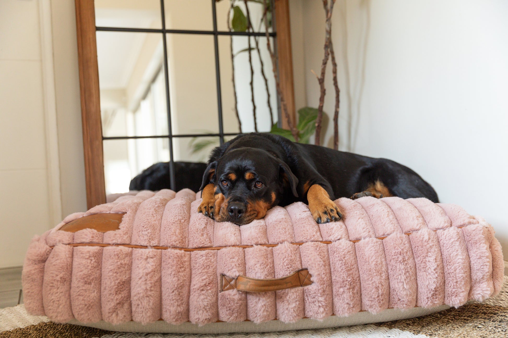 Our super soft, indulgent, faux-furry, pink fabric bed offers beauty and comfort.